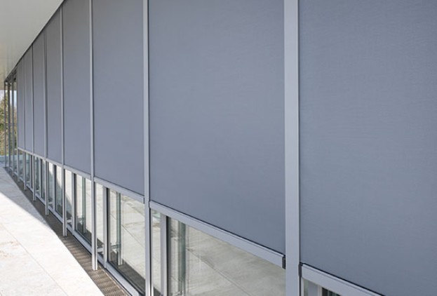 Die heroal VS Z Ecklösung ist ein innovatives Sonnenschutzsystem für Eckbereiche, wie zum Beispiel Ganzglasecken. Dank seitlicher Zip-Führung an hochwertigen Edelstahl-Seilen integriert sie sich dezent in die Gebäudeoptik und bietet einen ungestörten Blick nach außen. Die Textilscreens sind unabhängig voneinander steuerbar – bei Nichtverwendung verschwinden sie automatisch im heroal FME Vorbau-Kastensystem (Größe 105 und 125 mm). Realisierbar sind Flächen von bis zu 9 m² mit maximal jeweils 3 m Breite und 3 m Höhe pro Textilscreen.
