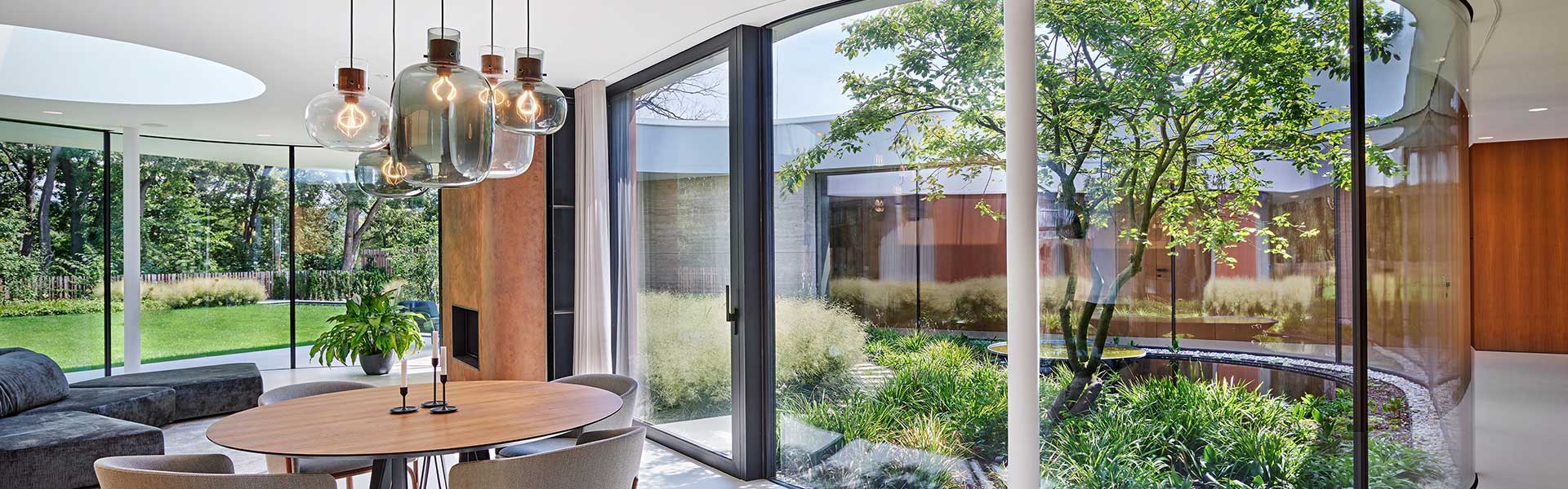 Großflächige Verglasungen lassen viel Tageslicht ins Gebäude, können im Sommer jedoch zu einer erhöhten Wärmebelastung führen. Die Hebe-Schiebetüren von heroal lassen sich mit intelligenten, perfekt abgestimmten Beschattungssystemen kombinieren. Diese reduzieren den direkten Sonneneinfall ins Gebäudeinnere effektiv, verhindern ein starkes Aufheizen der Innenräume und sorgen für ein angenehmes Raumklima – auch bei steigenden Außentemperaturen. Gleichzeitig bleibt der Wohnraum lichtdurchflutet und der Blick nach draußen – je nach gewähltem Textil – erhalten.