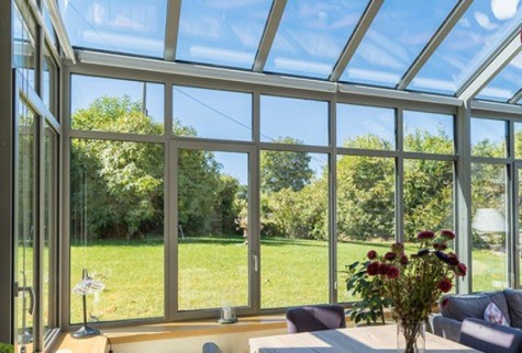 Die Zugluft wird innerhalb des Sommergartens mittels transparenter Dichtleisten in Scheibenzwischenräumen reduziert.
