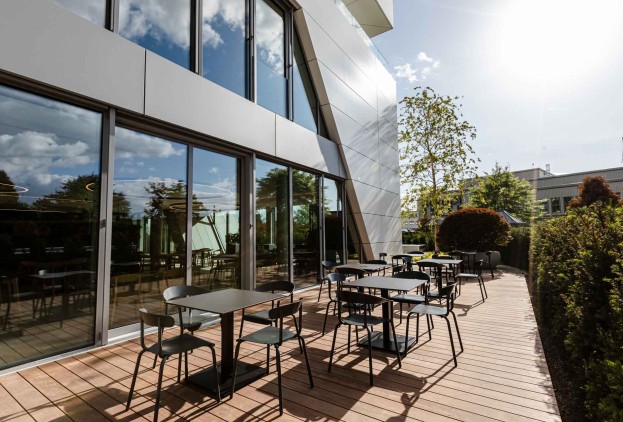 Im heroal Forum direkt gegenüber der Verwaltung befinden sich das heroal Bistro sowie Büroflächen, Schulungs- und Besprechungsräume.