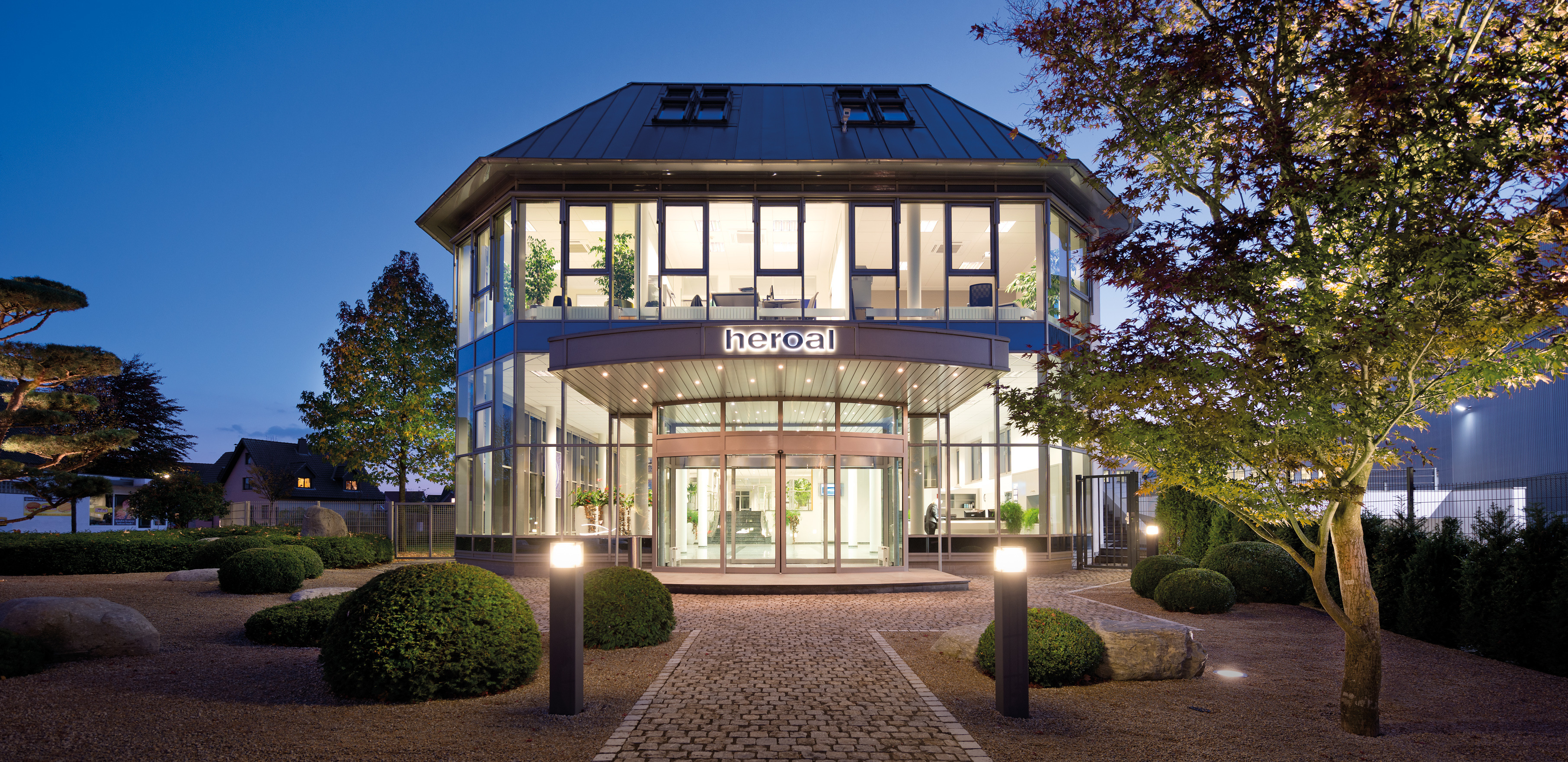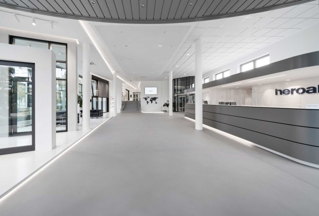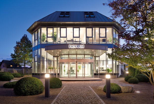 Die Hauptverwaltung hat ihren Sitz in Verl und befindet sich direkt neben dem Werk I. Das Gebäude mit der verglasten Fassade bietet reichlich Fläche für helle Büroräume sowie das heroal Schulungszentrum. Darüber hinaus wurde in der Verwaltung auf 440 m² Ausstellungsfläche ein Showroom mit den Highlights des heroal Portfolios eingerichtet.